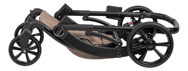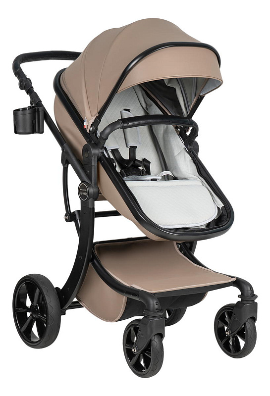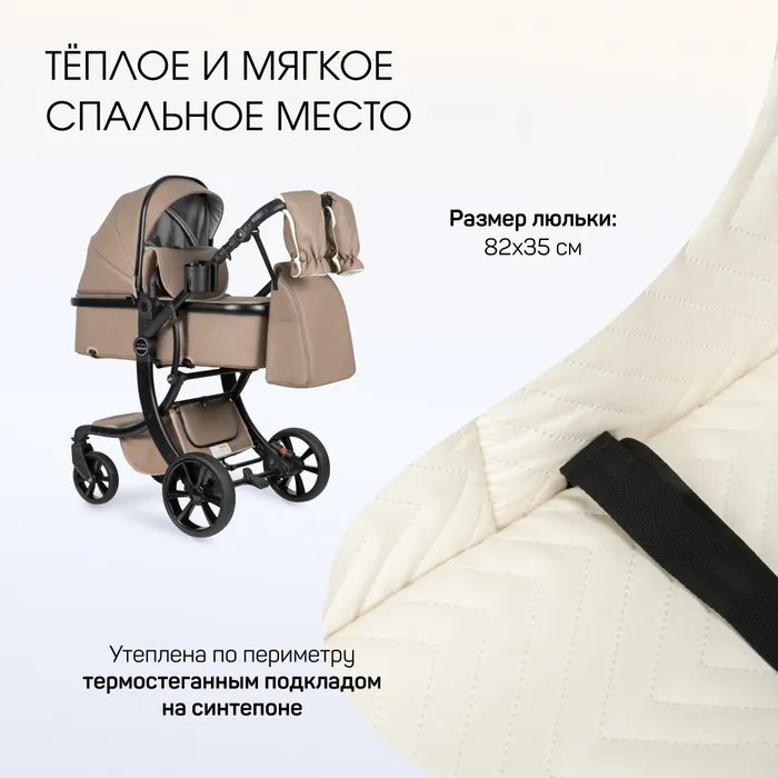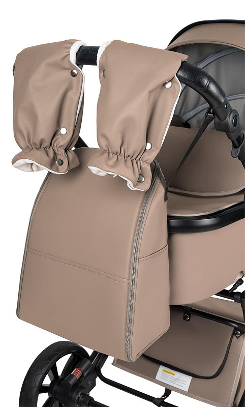 Коляска выполнена из экокожи Premium-класса с водоотталкивающей пропиткой, которая не только придает изделию изысканный вид, но и обеспечивает долговечность и простоту в уходе.