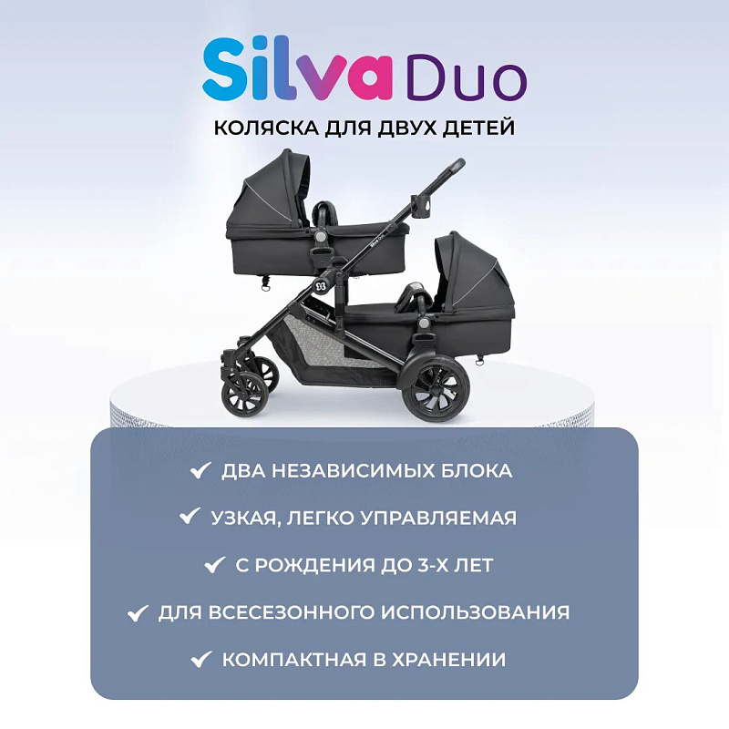 Farfello Silva Duo - это коляска, которая готова к любым задачам и условиям, идеально подходящая для семей, которые ожидают от коляски максимального комфорта и удобства.