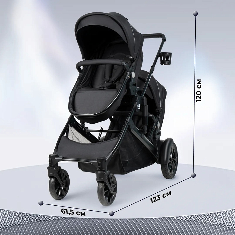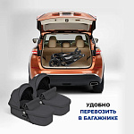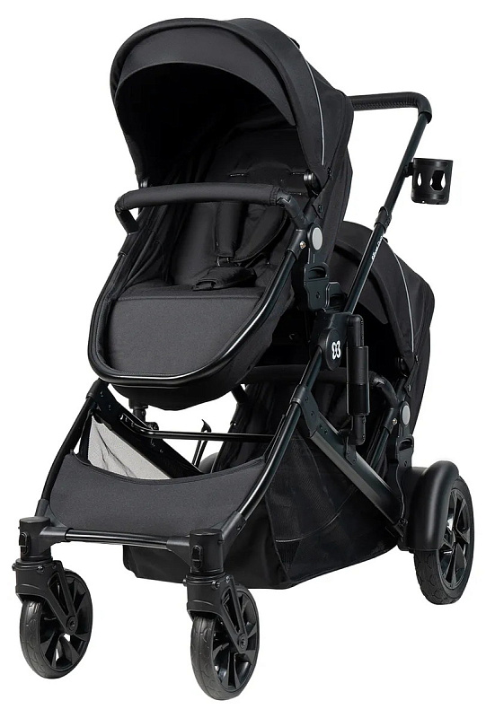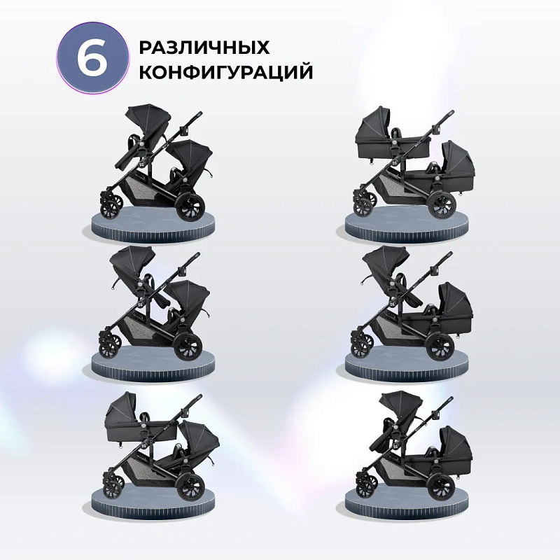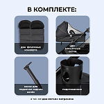 Комплектация включает в себя 2 накидки на люльку, 2 утепленных флисовых конверта, 2 матрасика, 2 москитные сетки, подстаканник, насос для колёс.