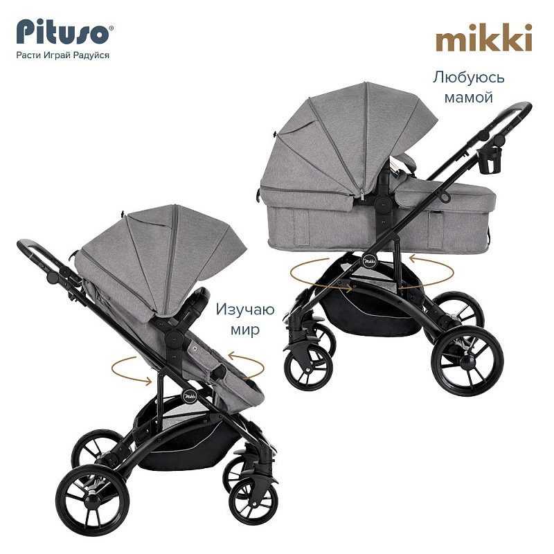 Коляска трансформер Pituso Mikki Black/Черный/Chrome