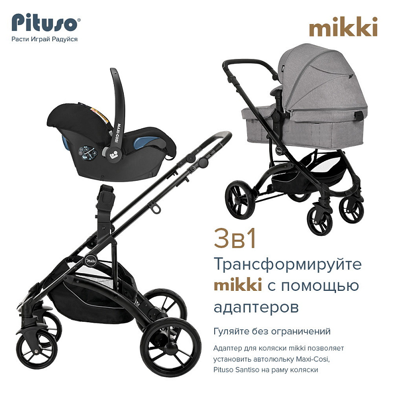 - Возможность установки автокресла Pituso Santiso и Maxi Cosi с помощью специальных адаптеров
