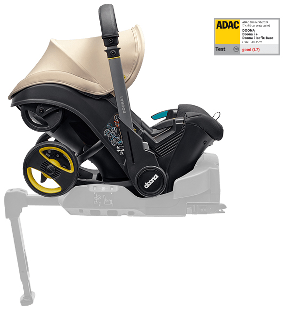 В дополнение к инновационной конструкции с двойными стенками, Doona i включает в себя надстройку Doona SIP (защита от бокового удара), обеспечивающую дополнительную защиту ребенка за счет поглощения энергии в случае бокового столкновения. Магнитное соединение обеспечивает быструю и легкую установку.