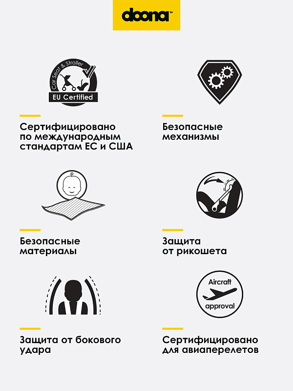 - К слову, стоит понимать, что Doona Plus полностью сохраняет эксплуатационные характеристики автокресла: защищает ребенка в случае аварийной ситуации, гарантирует комфорт малышу благодаря анатомической форме ложа, есть фиксирующие ремни безопасности, каркас выполнен из ударопрочного пластика.
