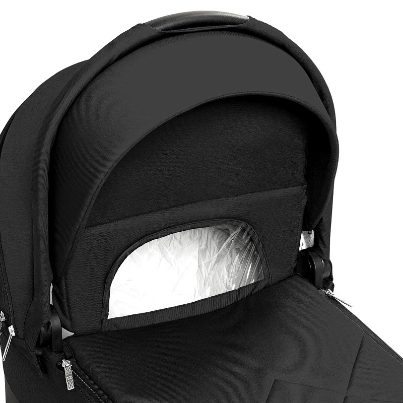 - бесшумный регулируемый капор из непромокаемой ткани с дополнительным отсеком и козырьком