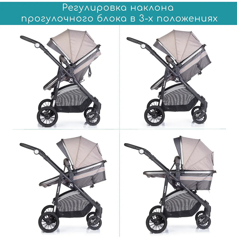 Коляска имеет три уровня наклона прогулочного блока-трансформера, плавную регулировку наклона спинки ремнями, классическую пружинную амортизацию, 5-точечные ремни безопасности, съёмный откидной поручень с паховым ремнём и возможность установки сиденья в любом направлении движения.