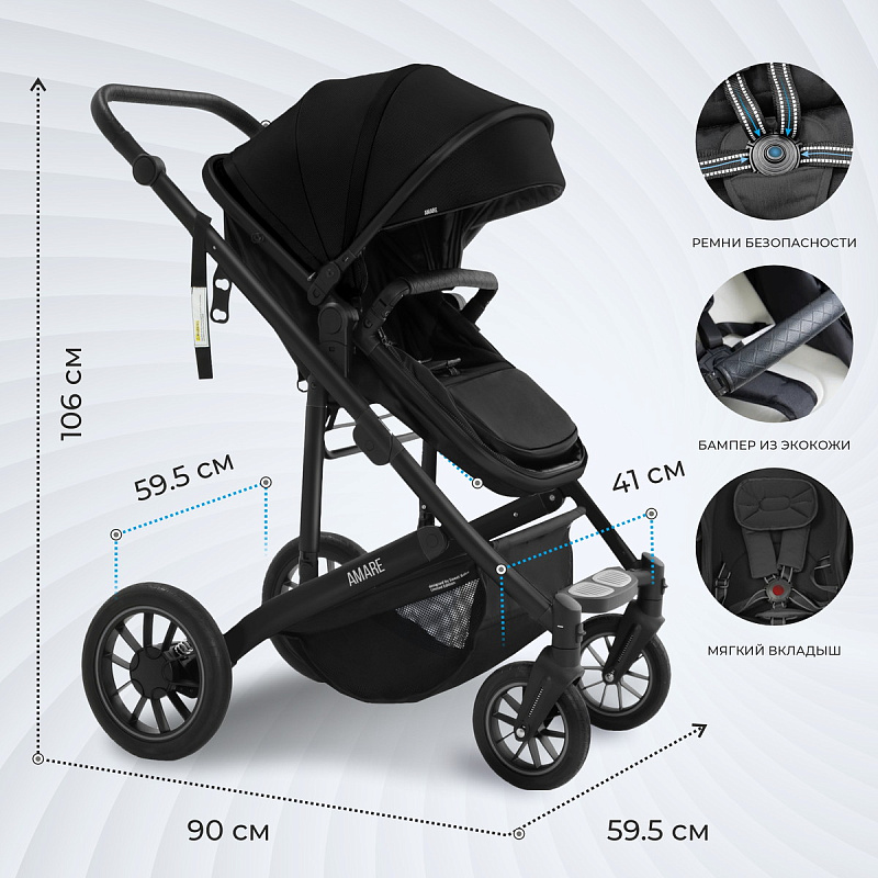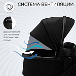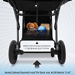 Большой козырёк защитит малыша от солнца и ветра, а смотровое окошко на капюшоне позволит маме всегда быть в курсе происходящего. Большая корзина вместит всё необходимое, а пятиточечные ремни безопасности с мягкими накладками обеспечат безопасность во время прогулок.