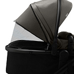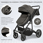 Большой козырёк защитит малыша от солнца и ветра, а смотровое окошко на капюшоне позволит маме всегда быть в курсе происходящего. Большая корзина вместит всё необходимое, а пятиточечные ремни безопасности с мягкими накладками обеспечат безопасность во время прогулок.