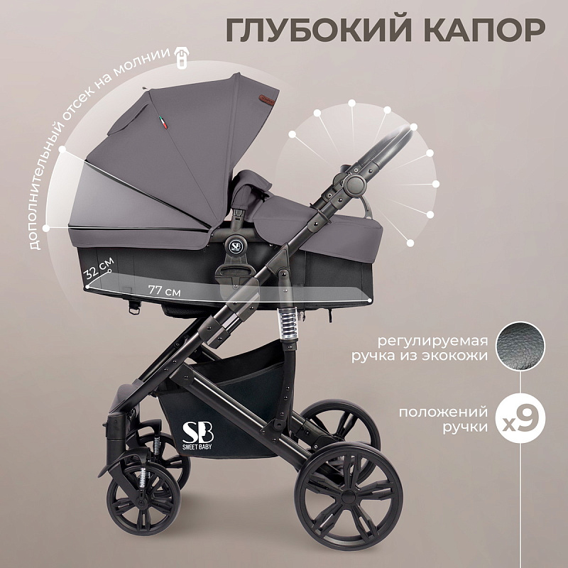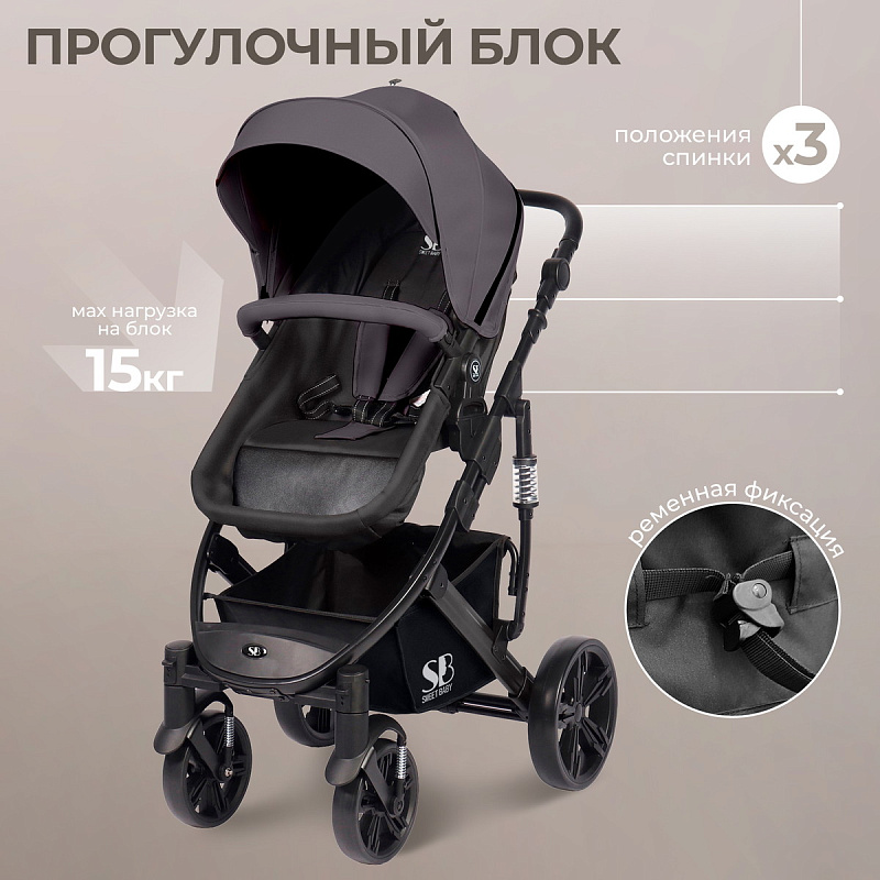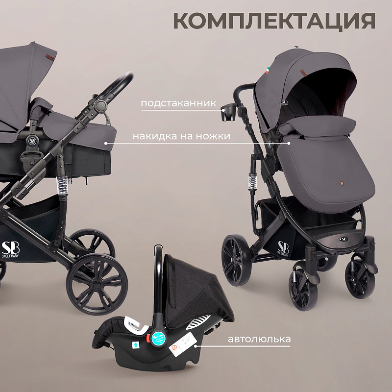 Коляска-трансформер Sweet Baby Comfort Black 3 в 1 427319, Grey