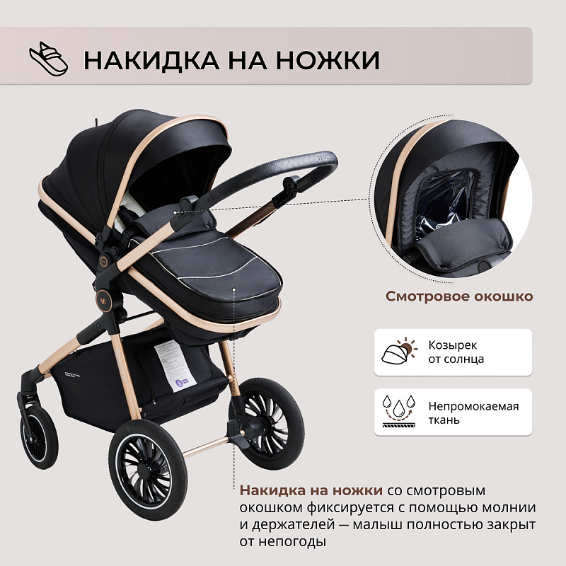 В комплекте: анатомический матрасик, сумка для мамы, дождевик, москитная сетка и муфта для рук.