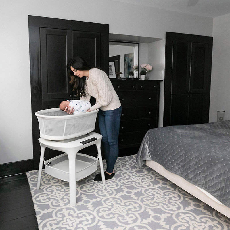 Малышу понравится уютное спальное место и сетчатые стенки, через которые видно маму. А родители оценят возможность управлять колыбелью удаленно, с помощью приложения на смартфоне.