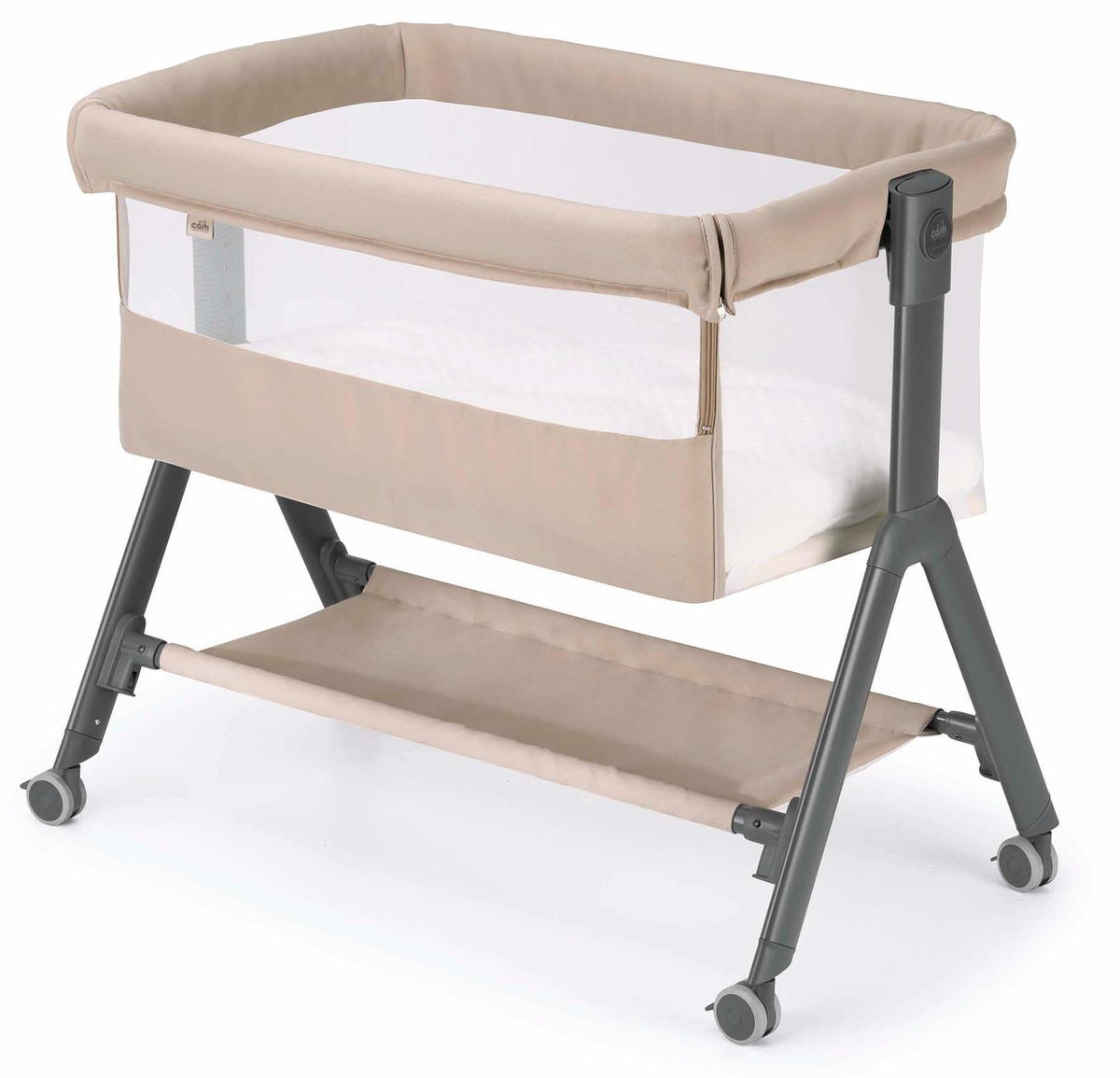 Практичность колыбели не оставляет равнодушными родителей: вместительная корзина для хранения позволяет держать все необходимые вещи под рукой, будь то пеленки, игрушки или личные вещи. Четыре колеса с тормозами и защитой от царапин делают перемещение колыбели по дому простым и безопасным.
