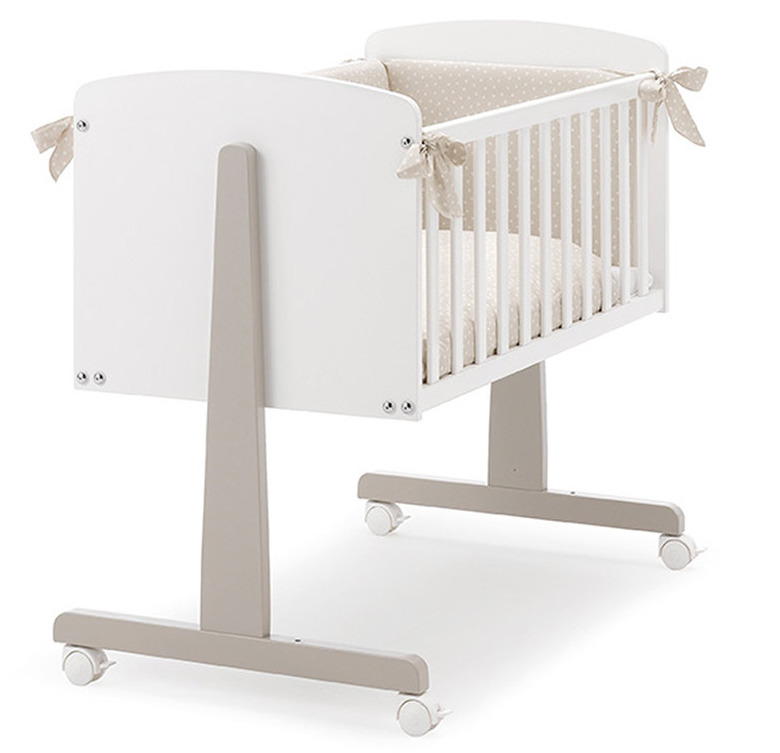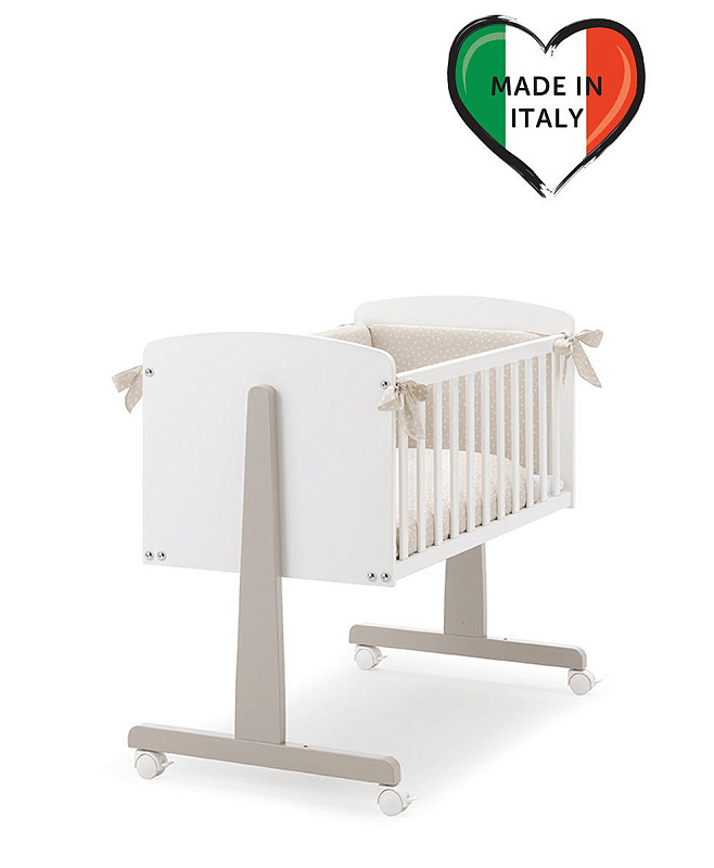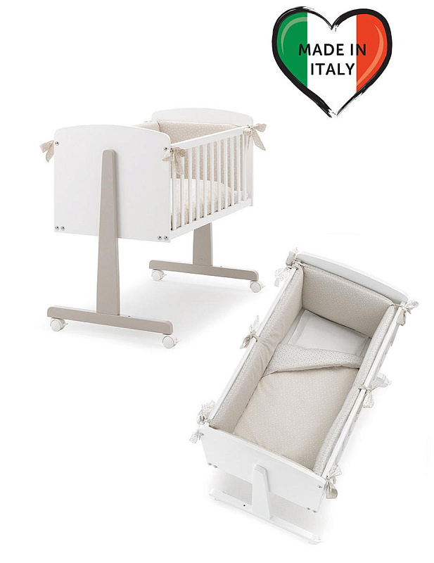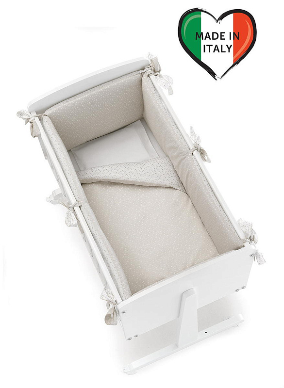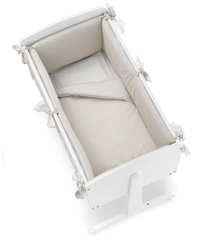 Колыбель Erbesi Ninna и комплект постельного белья Stelline Звездочки белый/серо-песочный