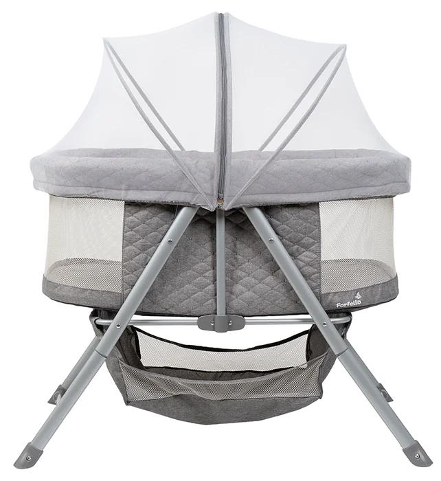 Удобная москитная сетка в комплекте защитит кроху от насекомых — особенно актуально, если вы любите проветривать комнату или отдыхаете на даче. А вместительная нижняя корзина — практичное решение для хранения пелёнок или игрушек. Всё необходимое будет под рукой.