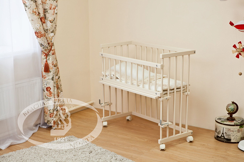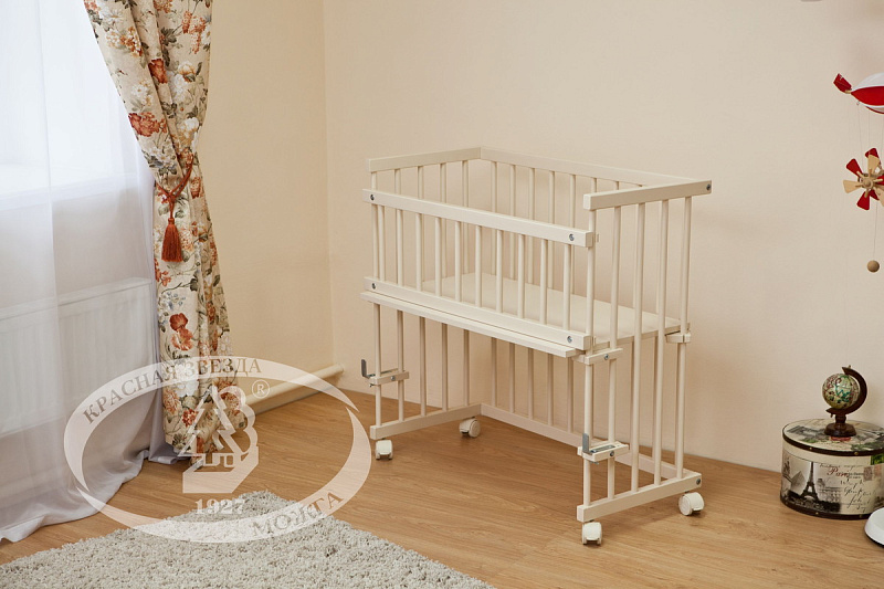 - Красная Звезда Малуша С-751 установлена на колесики со стопором, так что теперь малыш всегда может быть рядом с мамой, ведь колыбель так легко перемещать.