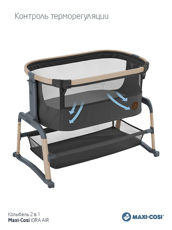 Maxi-Cosi Iora Air — это очень удобная и успокаивающая детская кроватка, созданная для того, чтобы быть ближе с вашим ребенком рядом и укреплять эту особую связь. Роскошный толстый матрас обеспечит вашему малышу весь необходимый комфорт. А во время более трудного сна удобная функция покачивания поможет успокоить вашего ребенка и снова заснуть. Модель Iora Air, изготовленная из сверхмягких тканей премиум-класса, на 100 % переработанных, имеет дышащую сетчатую ткань по всему периметру. А большая корзина для хранения внизу гарантирует, что все предметы первой необходимости вашего ребенка будут под рукой для круглосуточного ухода.