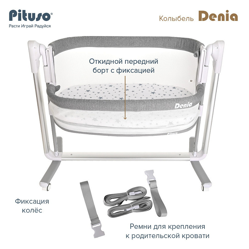 Колыбель Pituso Denia на колёсах 3 в 1 PD-C03-Grey