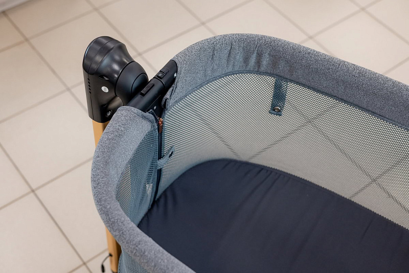 Колыбель можно использовать как самостоятельную детскую кроватку. Предусмотрена регулировка высоты люльки. Прочная надежная сетка с молниями позволяет родителям присматривать за ребенком. Матрасик имеет съемный чехол на молнии. Боковой бортик легко опускается и поднимается обратно. При использовании колыбели в качестве приставной кроватки рекомендуется крепление к родительской кровати при помощи специальных ремней (входят в комплект). Также мама может приподнять изголовье ложа, что улучшит дыхание малыша во время простудных заболеваний и снизит риск срыгивания после кормления. Регулируемая высота опор дает возможность создать наклон до 30°