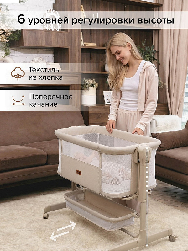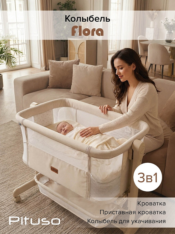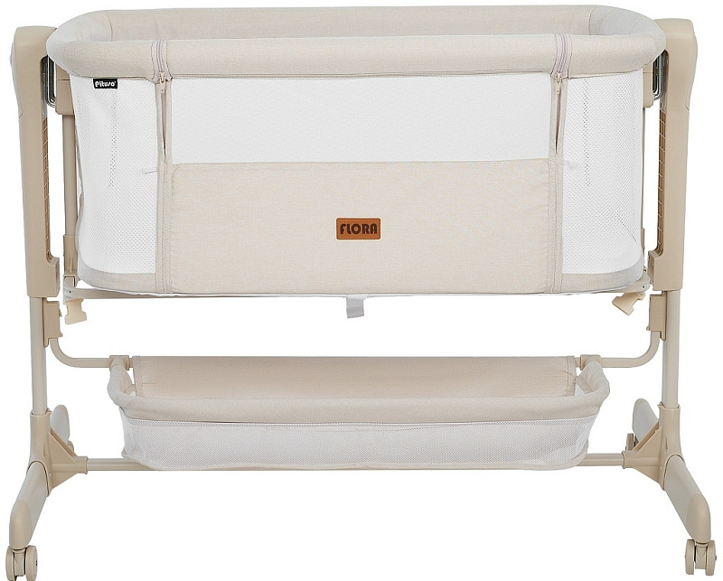 Приставная колыбель Pituso Flora имеет безопасную систему крепления к кровати родителей и позволяет вам спать рядом с малышом. Уникальная связь между малышом и родителями будет еще сильнее, а ночи – спокойнее! С колыбелью можно не беспокоиться о самочувствии младенца по ночам, ведь теперь вы сможете покормить и успокоить малыша, когда бы он ни проснулся. Также мама может приподнять изголовье ложа, что улучшит дыхание малыша во время простудных заболеваний и снизит риск срыгивания после кормления. Регулируемая высота опор дает возможность создать наклон. Колыбель оснащена специальной системой крепления, благодаря которой фиксировать ее к кровати родителей очень просто (крепится к кровати родителей с помощью ремней). Боковой бортик опускается для присоединения к кровати родителей и поднимается обратно. Прочная алюминиевая рама имеет 6 уровней регулировки высоты и усилена дополнительной защитой против случайного сложения. А кнопки с обеих сторон колыбели предотвращают случайную смену положения высоты. Колыбель можно использовать как самостоятельную детскую кроватку. Сетка по всему периметру колыбели позволяет родителям присматривать за ребенком.