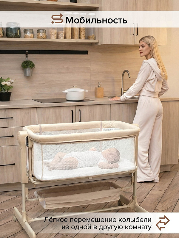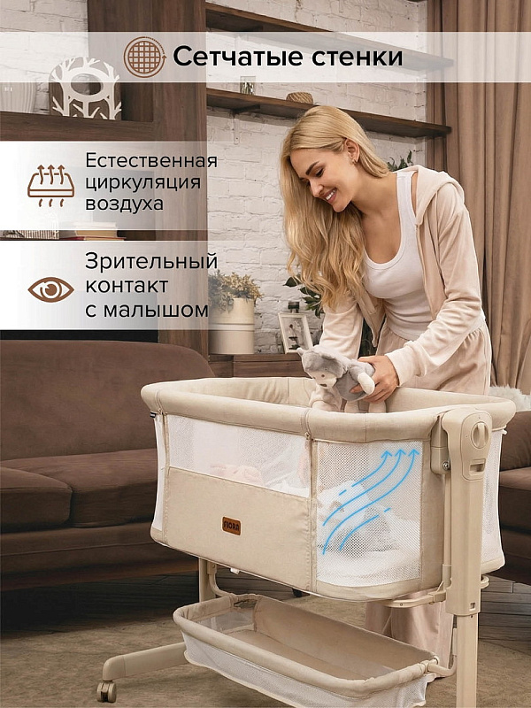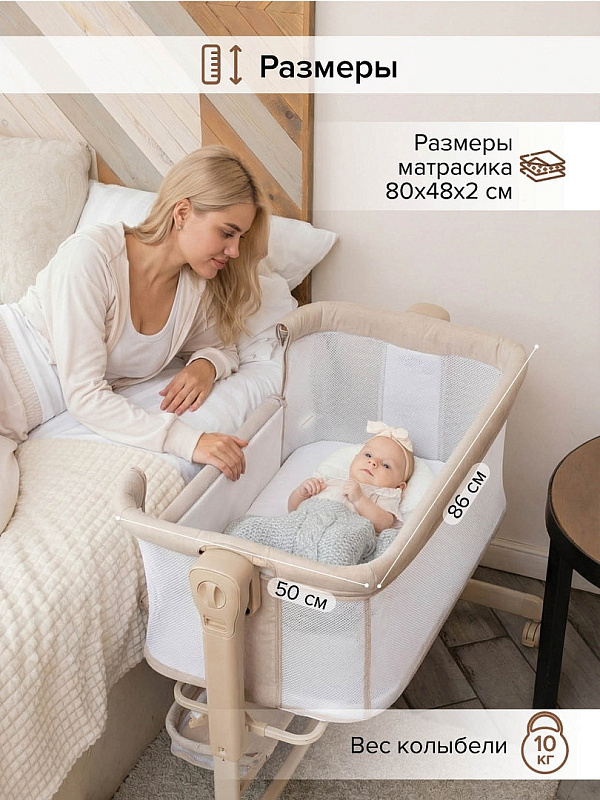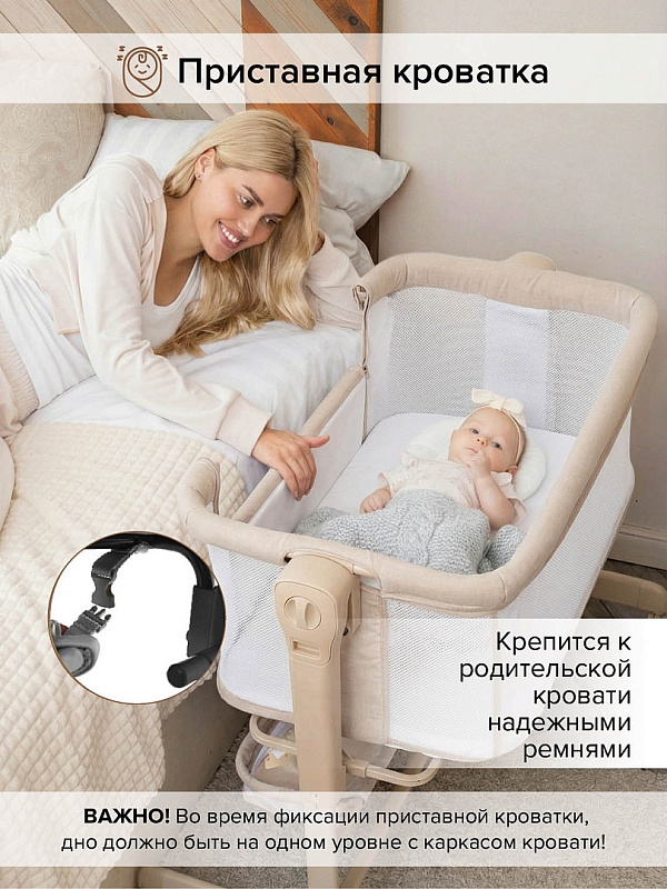 устанавливается вплотную к кровати родителей и надежно к ней крепится