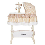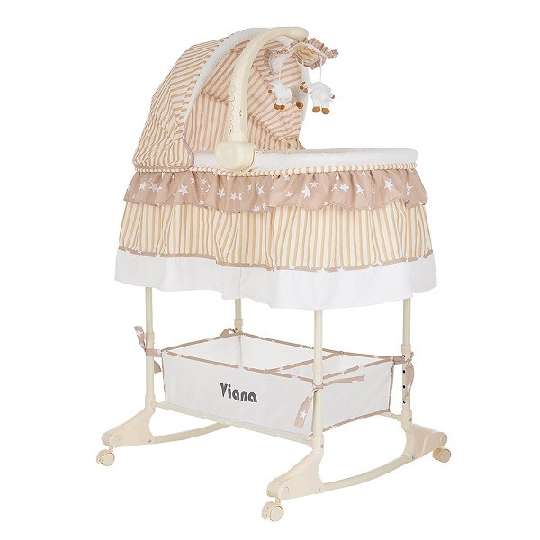 Колыбель-качалка предназначена для сна малыша с первых дней его жизни и до 5-6 месяцев (пока малыш не научится переворачиваться). Можно использовать как колыбель или как приставную кроватку. Каркас изготовлен из стального профиля, чехол произведен из дышащей ткани, которую можно стирать. Удобная корзина предназначена для хранения аксессуаров. Колесики для перемещения по комнате.