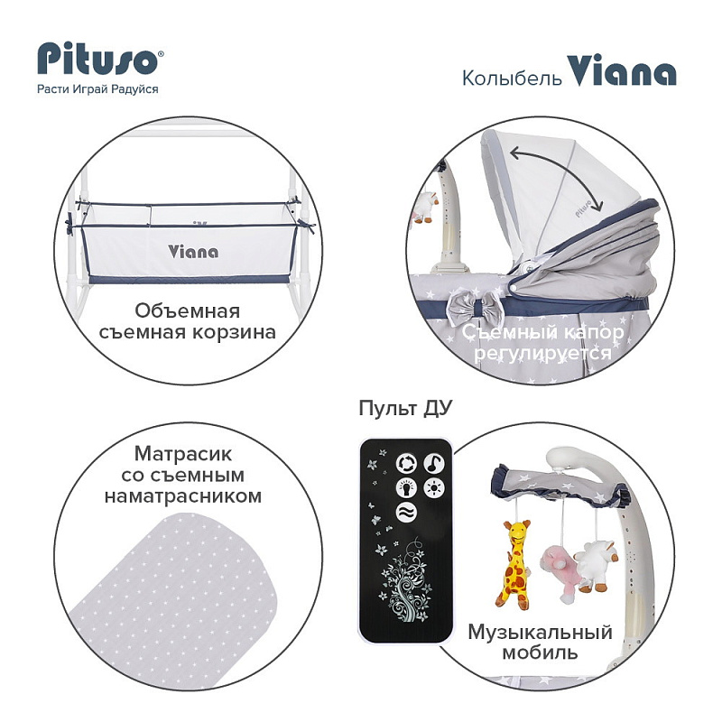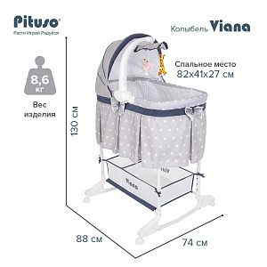 Колыбель Pituso Viana на колёсах 3 в 1 YS401-SG Stars Grey/серый