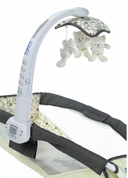 • съемный музыкальный мобиль со световыми и звуковыми эффектами и 3-мя подвесными игрушками помогут развлечь малыша