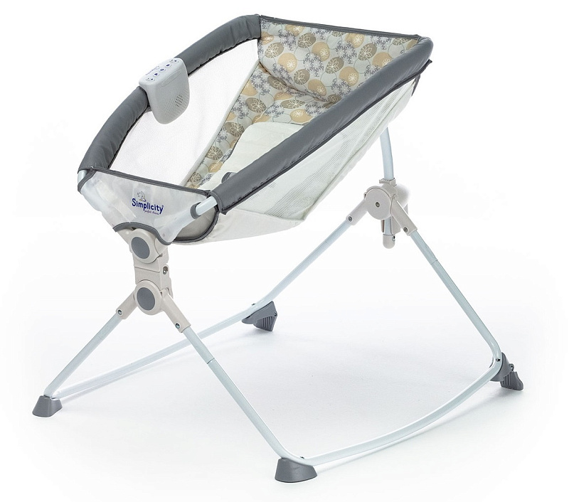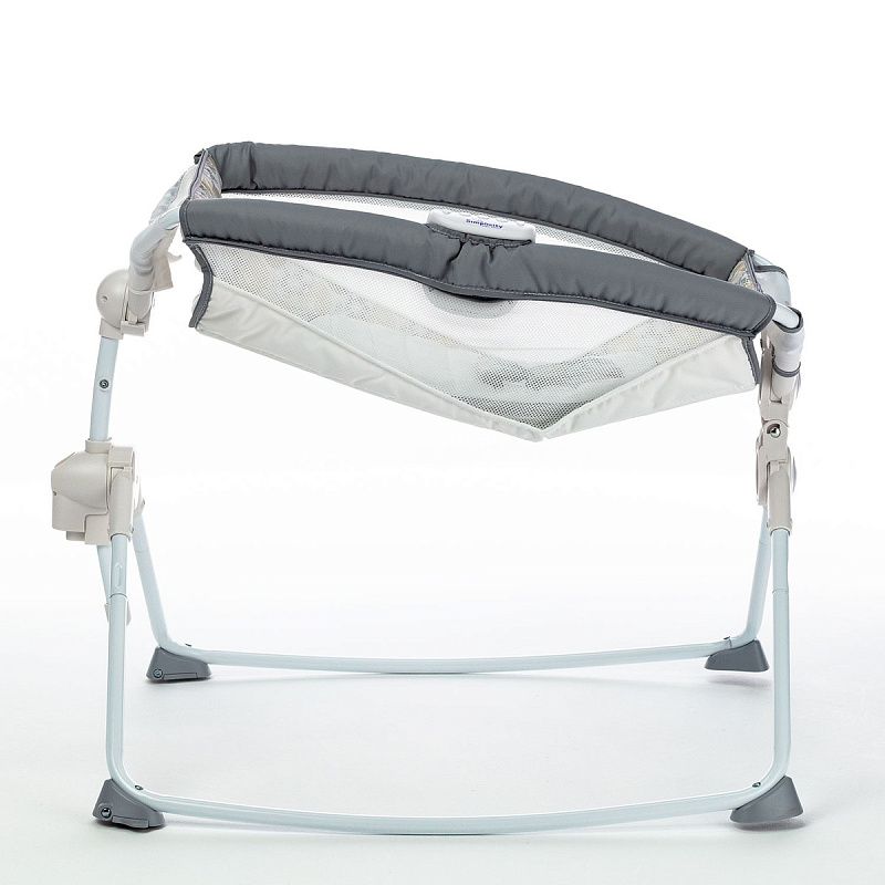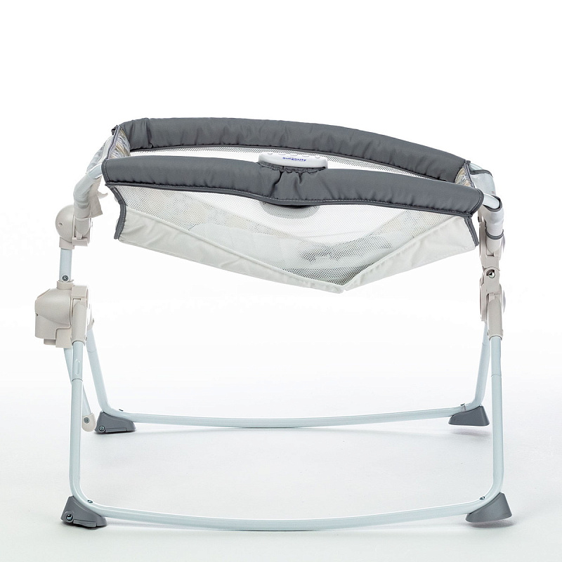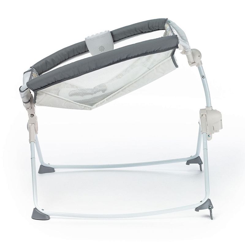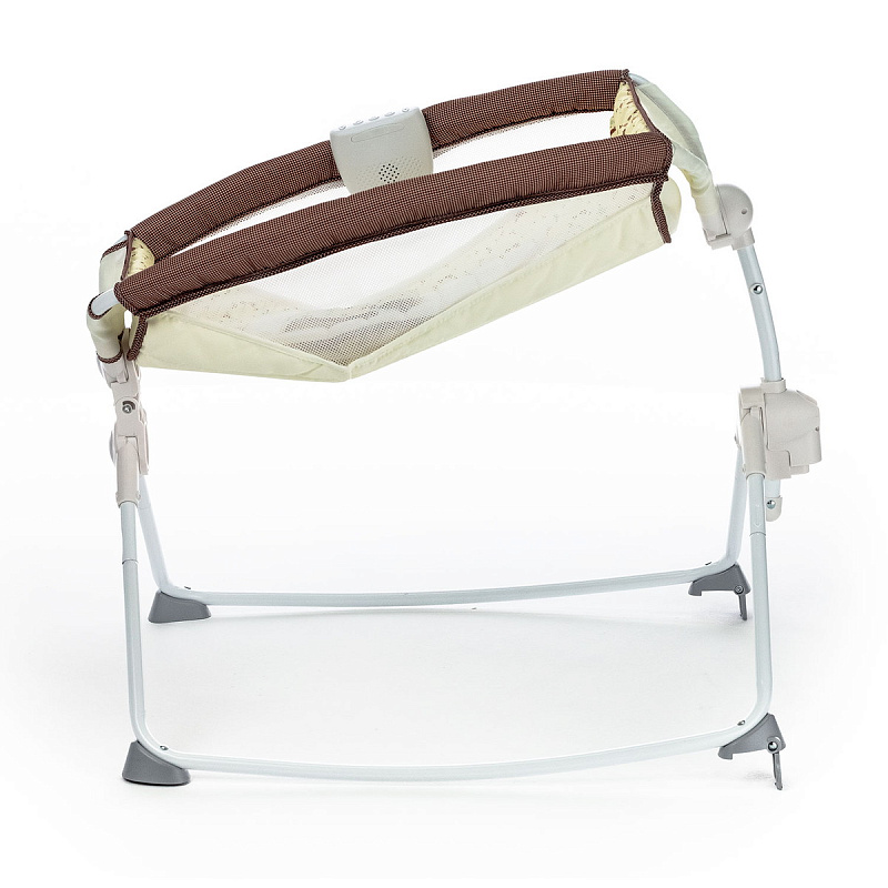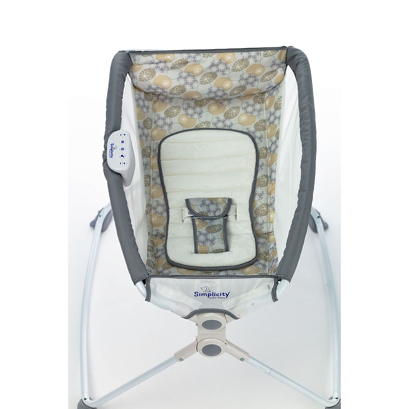 Колыбель имеет анатомически правильное основание. Необходимую жесткость обеспечивает специальная пластиковая вставка под чехлом. Для дополнительного комфорта малыша предусмотрен мягкий вкладыш, идеально повторяющий форму тела ребенка. Сетчатые вставки по бокам служат для хорошей циркуляции воздуха, а изогнутые (дугообразные) ножки удобны для плавного качания. Нежный режим вибрации поможет малышу расслабиться, а колыбельные мелодии подарят ему спокойный сон.
