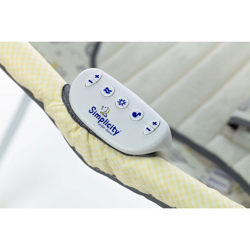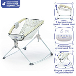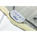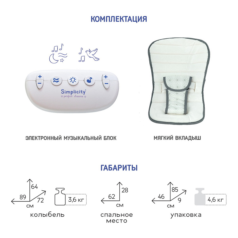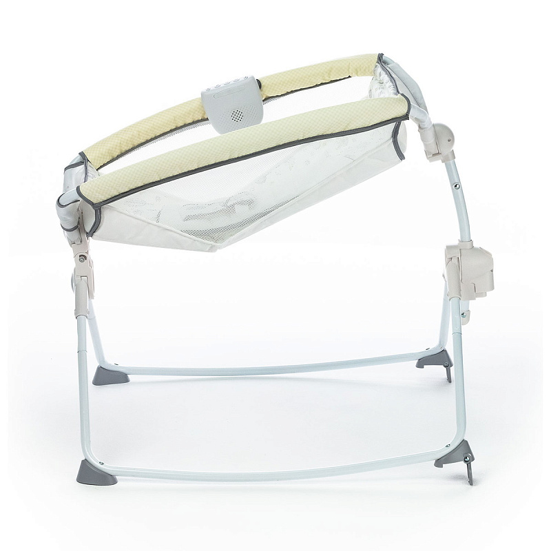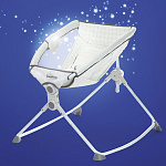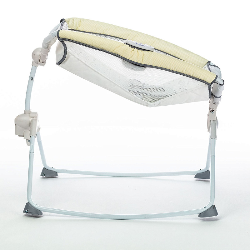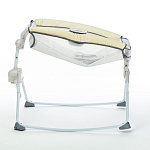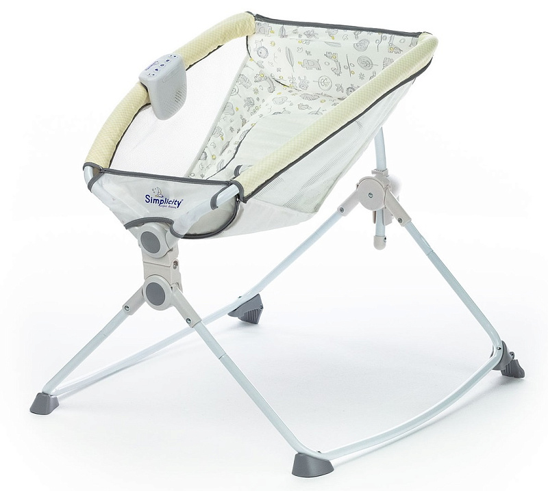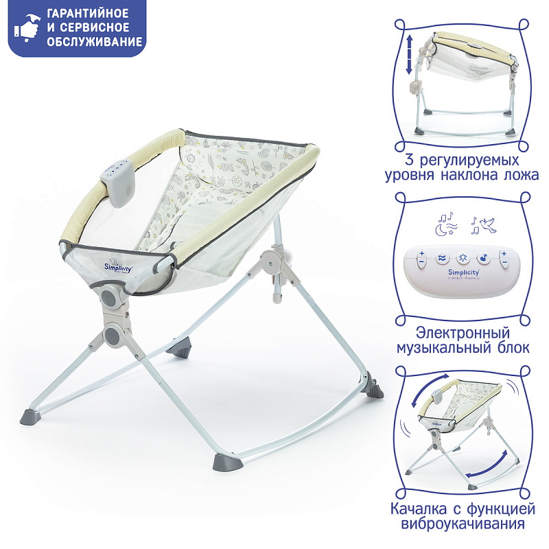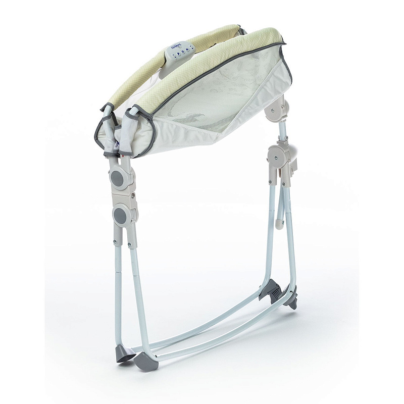 Колыбель имеет анатомически правильное основание. Необходимую жесткость обеспечивает специальная пластиковая вставка под чехлом. Для дополнительного комфорта малыша предусмотрен мягкий вкладыш, идеально повторяющий форму тела ребенка. Сетчатые вставки по бокам служат для хорошей циркуляции воздуха, а изогнутые (дугообразные) ножки удобны для плавного качания. Нежный режим вибрации поможет малышу расслабиться, а колыбельные мелодии подарят ему спокойный сон.