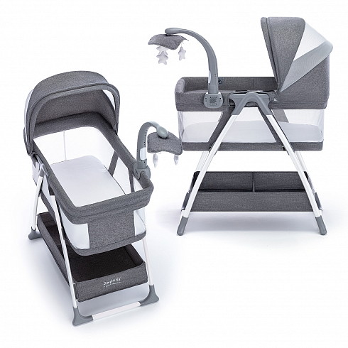 - в комплекте: колыбель, съёмный матрасик, наматрасник, капор, мобиль с игрушками, тканевая корзина для белья