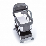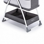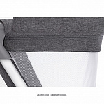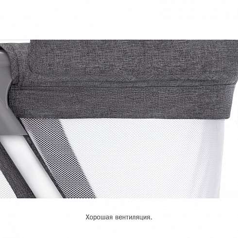 Колыбель со множеством функций дополнена стенками из сетчатых вставок для лучшей вентиляции и возможности наблюдения за ребёнком. Модель с просторным спальным местом. Каркас закрыт мягкой накладкой в верхней части, а внутри расположен матрасик с простынкой на резинке. Складной капор защищает от света, имеет сетчатую вставку в среднем отсеке. Конструкция изготовлена из алюминиевого профиля и ударопрочного пластика. Ножки-распорки снабжены нескользящими накладками, что обеспечивает колыбели хорошую устойчивость на любом напольном покрытии.
