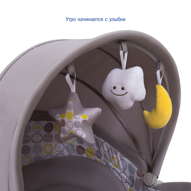 2. Люлька качалка. Укачивание выполняется традиционным способом на полозьях. Чтобы остановить колыбель в неподвижном состоянии, достаточно отогнуть стопоры. Музыкальный мобиль проигрывает приятные мелодии и позволяет включить виброукачивание. На дуге имеются подвесные игрушки. Защитить малыша от насекомых на открытом воздухе поможет москитная сетка.