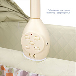 Колыбель предлагает 2 варианта укачивания: с помощью режима виброкачания и вручную на поперечных полозьях. Виброукачивание помогает малышам, которых беспокоит вздутие живота и колики, а ручное укачивание на полозьях будет возможным после того, как колесики сложатся внутрь полозьев. Чтобы предотвратить случайное перемещение колыбели предусмотрены фиксаторы на колесиках. Также в колыбели предусмотрена возможность изменения наклона ложа, что позволяет отходить воздуху после кормления и предотвращается срыгивание пищи у новорожденного.