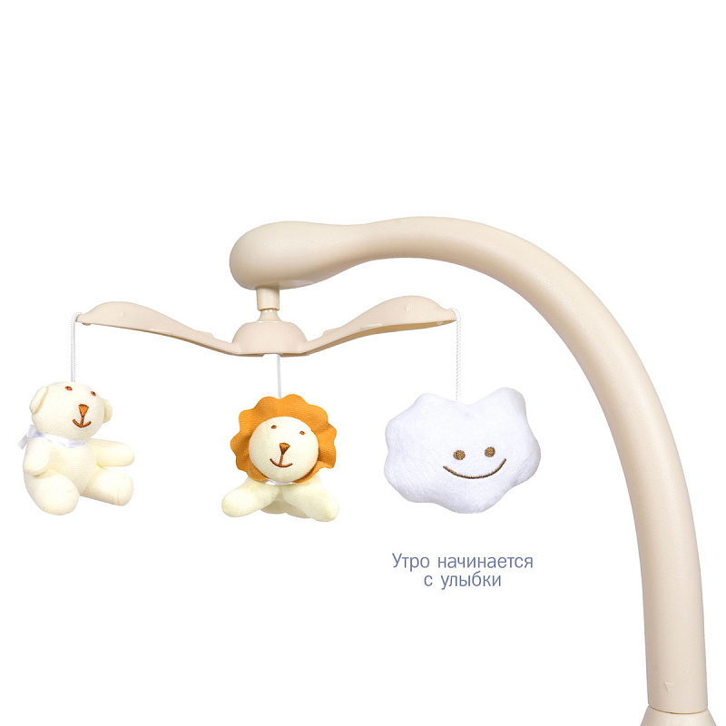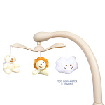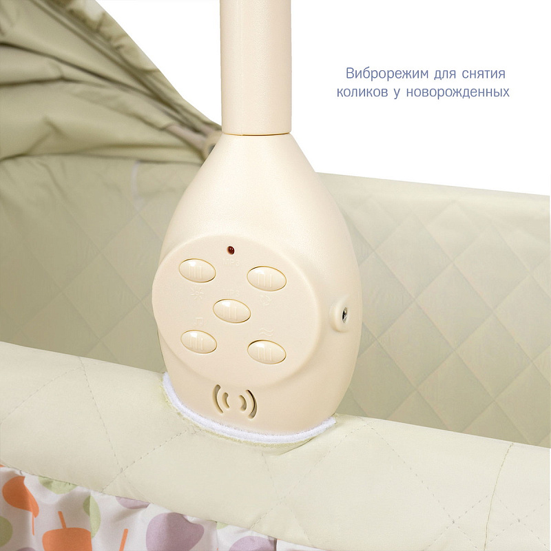 Кнопки на мобиле регулируют интенсивность вибрации, включают проигрывание музыкальных мелодий, заложенных в память устройства, и воспроизведение музыки в формате MP3. Одновременно можно запустить вращение подвесных игрушек и ночную подсветку. Имеется регулировка звучания по громкости.