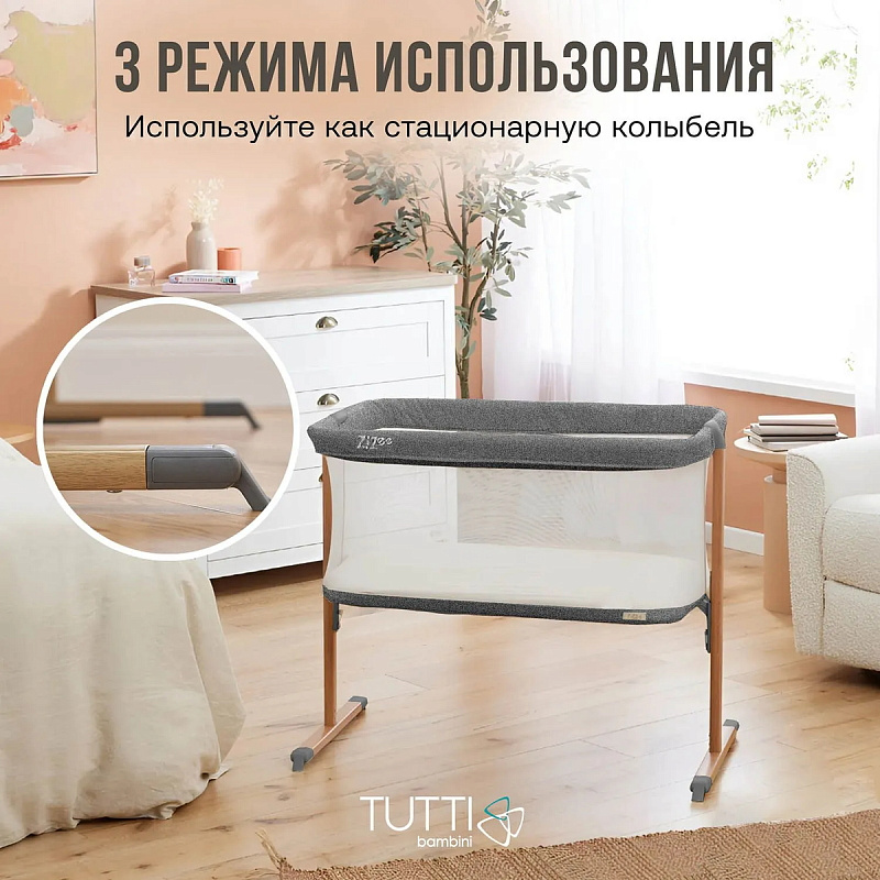 3 режима использования: стационарная колыбель, колыбель-качалка, мобильная колыбель на колесиках.
