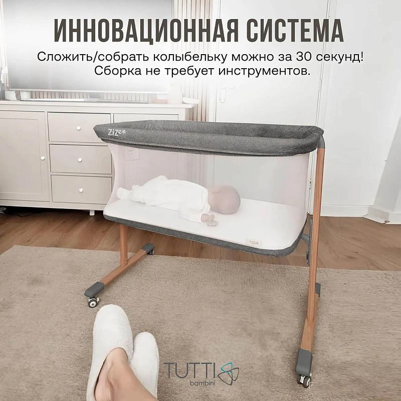 Tutti Bambini ZiZee оценят те, кто любят путешествовать! Уникальная система сложения за 30 секунд, легкий вес и компактный размер позволяют брать ее не только на дачу или в гости к бабушке, но в любой отпуск или путешествие. В комплекте идет сумка для транспортировки. И кстати, собрать колыбель можно без инструментов!