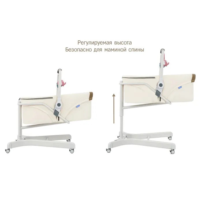 - Мобильная колыбель и кроватка. Основание из прочного стального профиля. Съёмный чехол со вставками из эко-кожи, поверхность легко моется. Снабжена колёсами, можно перемещать в пределах квартиры. Для сна на улице есть москитная сетка.