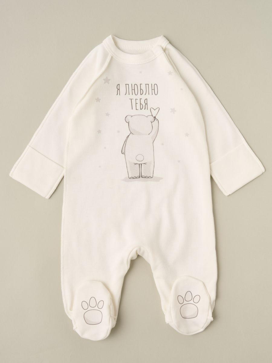 Комбинезон на кнопках Little Star Мишка Я люблю тебя 8692 (ЧЗ-мз) крем 56