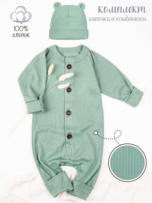 Комбинезон AmaroBaby Fashion с шапочкой зеленый 80
