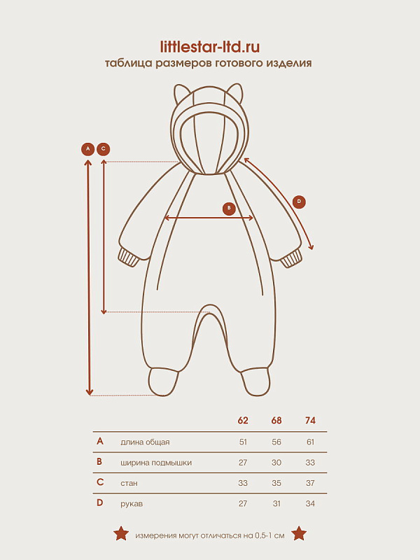 Доступные размеры: от 56 до 74 (от 0 до 9 месяцев)
