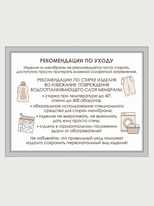 Состав: верх — 100% полиэстер (мембрана), подклад — 100% хлопок, утеплитель — Шелтер 230 г.
