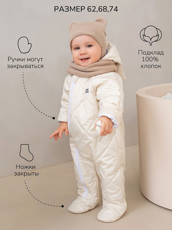 Комбинезон демисезонный AmaroBaby Elf стеганый ЧЗ молочный 74