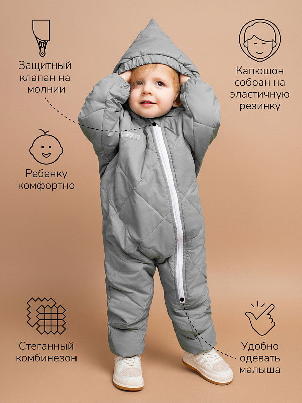 Комбинезон демисезонный AmaroBaby Elf стеганый ЧЗ серый 92