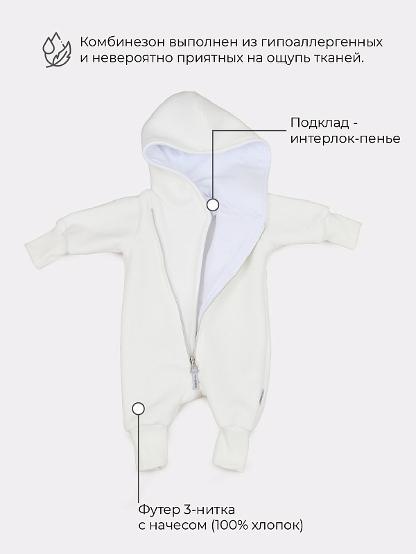 • Комбинезон выполнен из гипоаллергенных и невероятно приятных на ощупь тканей
