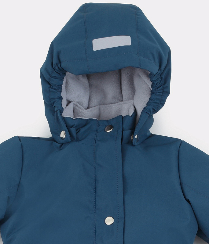 - капюшон зафиксирован с помощью кнопок. Это необходимо для безопасности ребенка, который уже начал делать первые шаги, так как данная часть одежды может зацепит