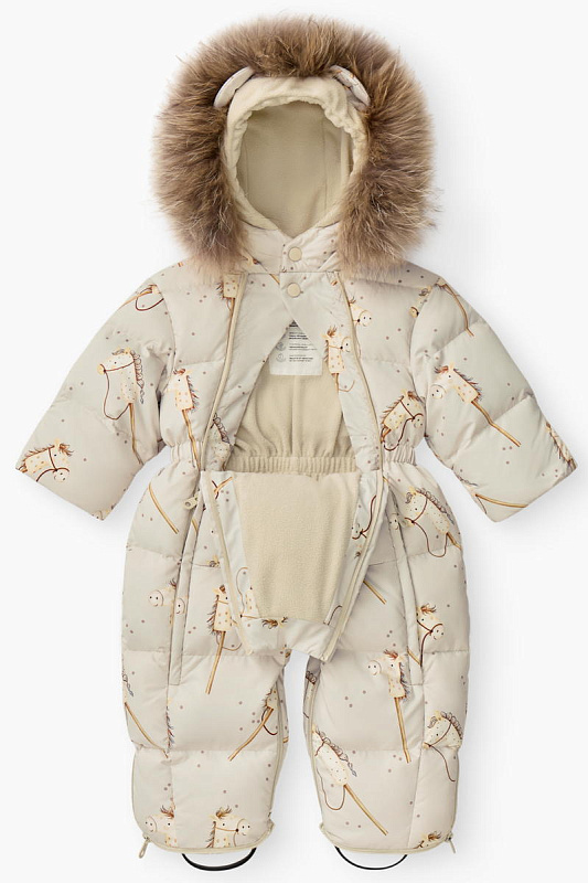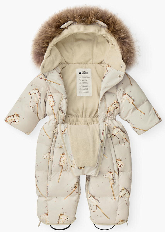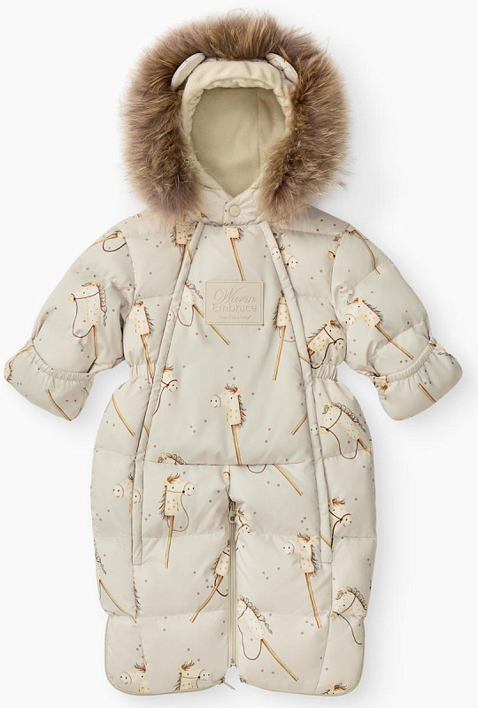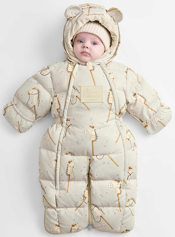Трансформируется из комбинезона в конверт - легко превращается в конверт для новорожденного с закрытыми ручками и ножками, защищая от переохлаждения