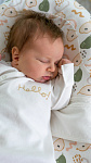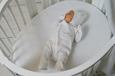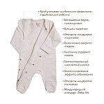 Удобные застежки позволяют легко расстегнуть комбинезон при переодевании ребенка. Наружные швы, отсутствие вышивок и вшивных этикеток дает максимальный комфорт ребенку. Отвороты-нецарапки на рукавах защищают малыша от царапин. Крой учитывает особенности физиологии, не мешает малышу во время сна.