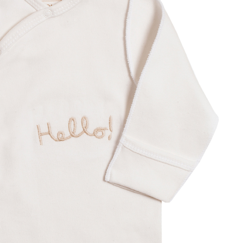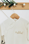 Комбинезон-слип для новорожденного Hello! создан с учетом физиологических особенностей малыша. Изготовлен из натуральной ткани интерлок-пенье из 100% хлопка.