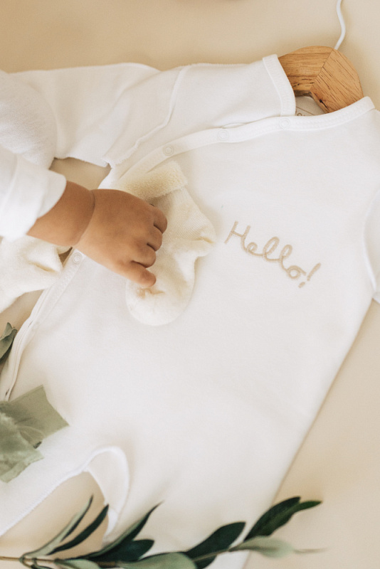 Комбинезон-слип для новорожденного Hello! создан с учетом физиологических особенностей малыша. Изготовлен из натуральной ткани интерлок-пенье из 100% хлопка.