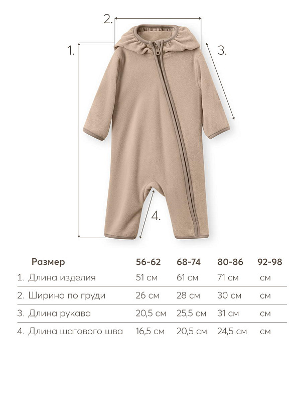Флисовый комбинезон для новорожденных - незаменимая вещь в гардеробе малышей. Идеально подходит для прохладных дней весны и осени. Этот флисовый слип подарит малышу чувство уюта благодаря использованию материала из 100% полиэстера. Свободная посадка обеспечивает легкость движений, а капюшон с ушками добавляет очарование и дополнительную защиту от прохладного ветра. Флисовый комбинезон демисезонный продуман до мельчайших деталей: удобная длинная молния позволяет быстро надеть и снять его, а высокий ворот надежно закрывает шею, защищая малыша от непогоды. Особое внимание уделено защите маленьких ручек. Рукава моделей маленьких размеров дополнены антицарапками, которые защищают малыша от непреднамеренных повреждений кожи детскими ноготками.