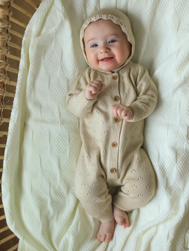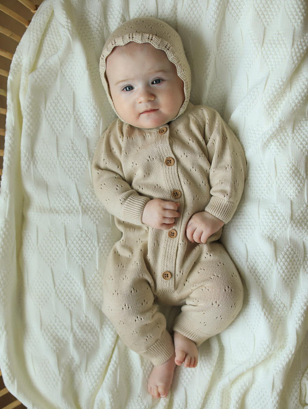 Комбинезон и чепчик Little Star (вязаный хлопок) 80376 (ЧЗ-мз) экрю 62